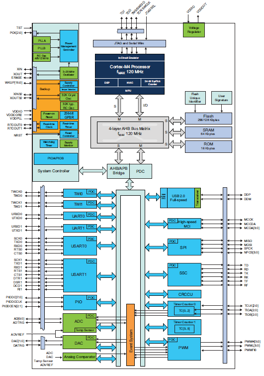 A current project involves an ATSAM4S 32-bit microcontroller. After so many development efforts based on 8-bit AVR's, a component with a megabyte of program space, 32 bits, and floating-point instructions, working an ARM-based product feels like programming a mainframe. Indeed one of these thumbnail-sized chips, though more limited in ultimate memory space, has a much faster CPU clock, and is in the same league as the only mainframe I ever programmed: an IBM-370. A single human generation can change so much!